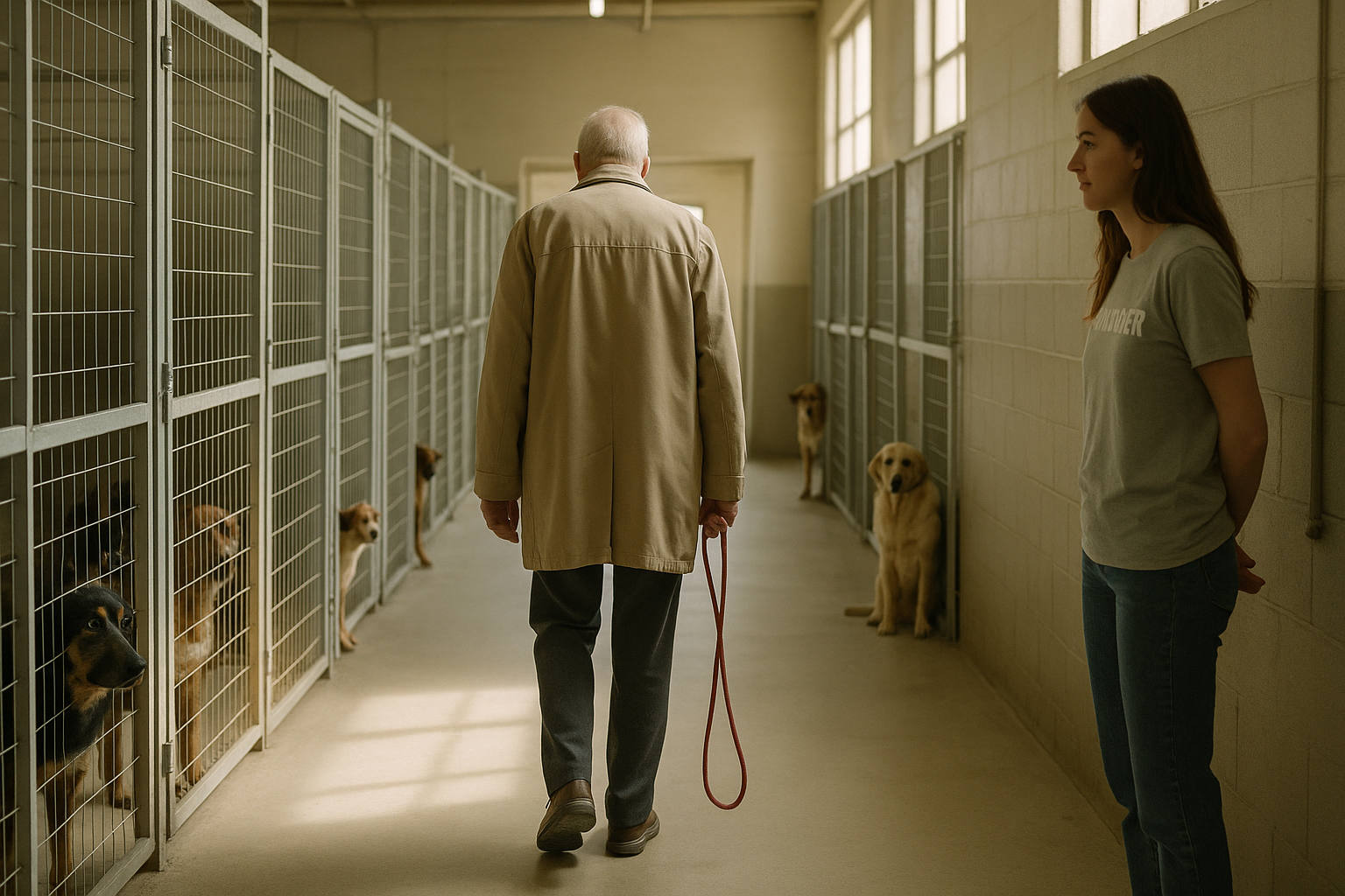 Nigdy nie prosił o nowego psa. Nigdy nie wchodził na plac zabaw jak inni goście. Po prostu powoli przechodził obok rzędów kojców, patrząc na każde szczekające, skomlące, pełne nadziei zwierzę z dziwną mieszaniną przeprosin i czułości w bladoniebieskich oczach.