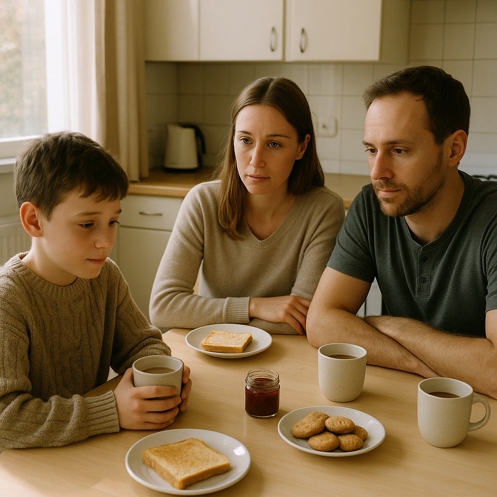 W środku, w świetle kuchennych lamp, Luka wydawał się jeszcze mniejszy. Jego palce były czerwone od zimna. Siedział przy stole jak ktoś w kościele dla nieznajomych – wyprostowany, z założonymi rękami, bojąc się czegokolwiek dotknąć.