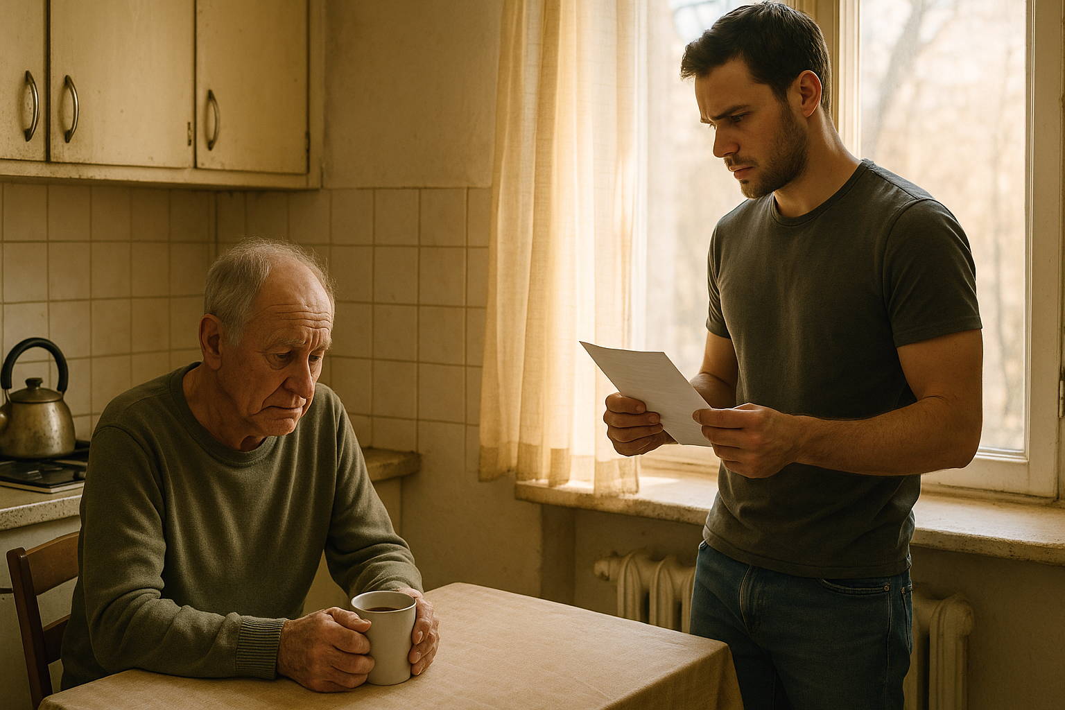 Zastał Marka przy kuchennym stole, wpatrującego się w nietknięty kubek. Ramiona staruszka, niegdyś szerokie i kojące, wydawały się skurczone, zwinięte w kłębek.