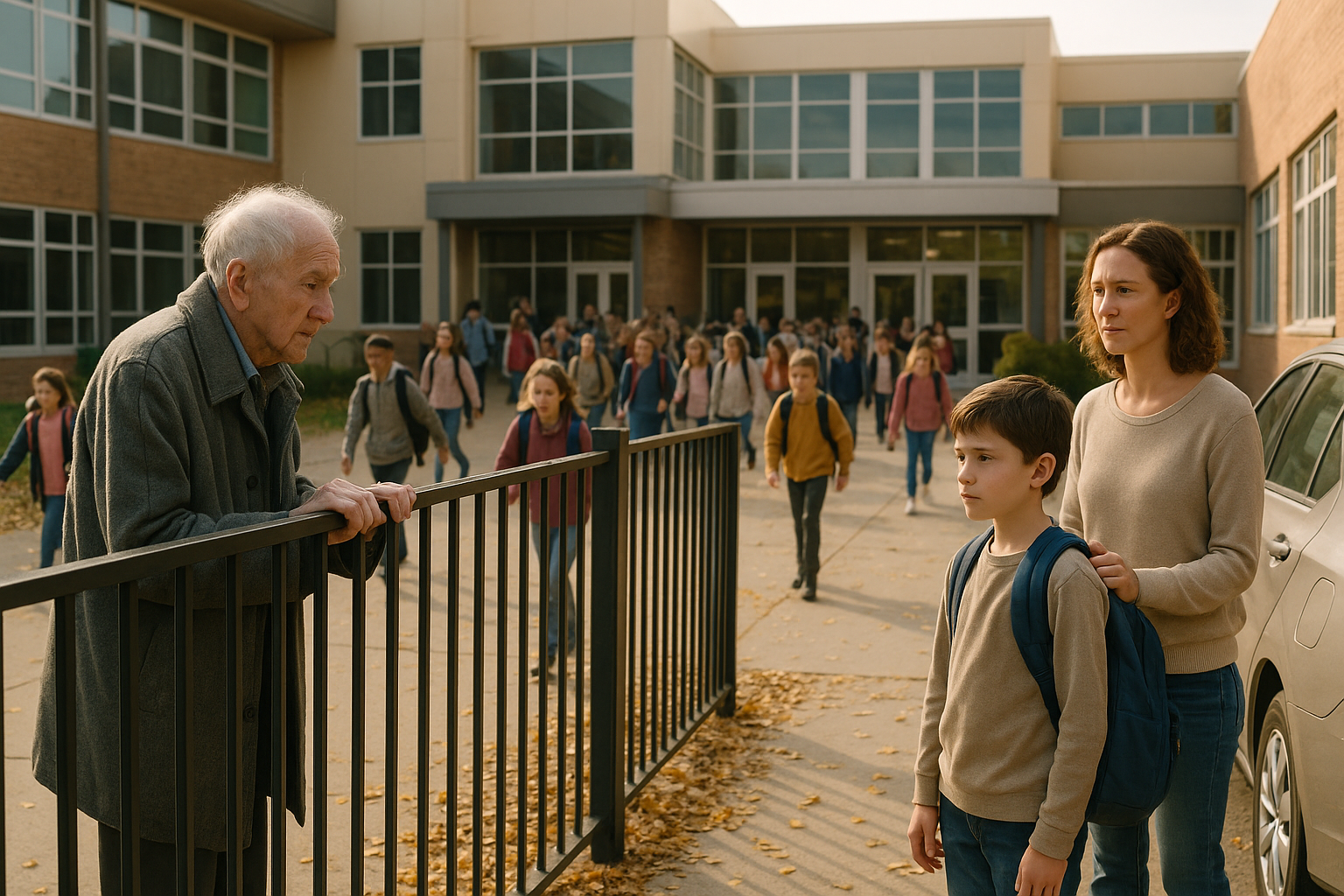 Staruszek stał przy szkolnym ogrodzeniu każdego popołudnia, aż pewnego dnia mój syn wrócił do domu i wyszeptał: „Mamo, on myśli, że jestem jego synem”.