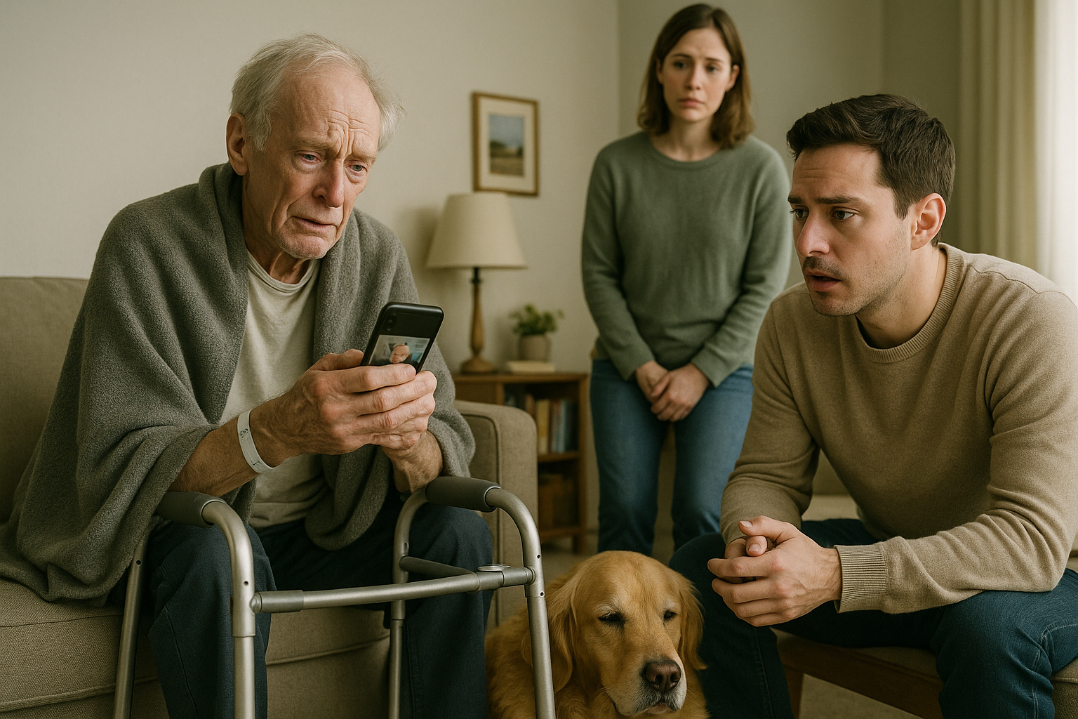 W korytarzu stała Emma, z policzkami zarumienionymi od zimna, obok chudego, zgarbionego staruszka, trzymającego się wgniecionego metalowego chodzika. Jego płaszcz był o dwa rozmiary za duży. Jego oczy – wyblakłe, niebieskie – wędrowały po ścianach, jakby szukał znajomego obrazu.