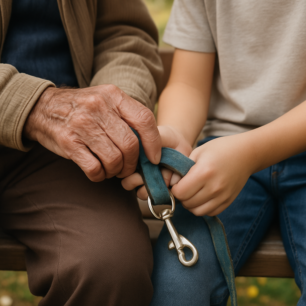 Była wczesna jesień w małym parku miejskim. Trawa była jeszcze zielona, ale pod ławkami zbierały się już pierwsze żółte liście. Ludzie mijali staruszka, nie dostrzegając go: był po prostu kolejną samotną postacią w pogniecionym szarym płaszczu. Jedynie smycz w jego dłoniach przyciągała wzrok: starannie owinięta wokół palców, z metalowym klipsem wypolerowanym od ciągłego dotykania.