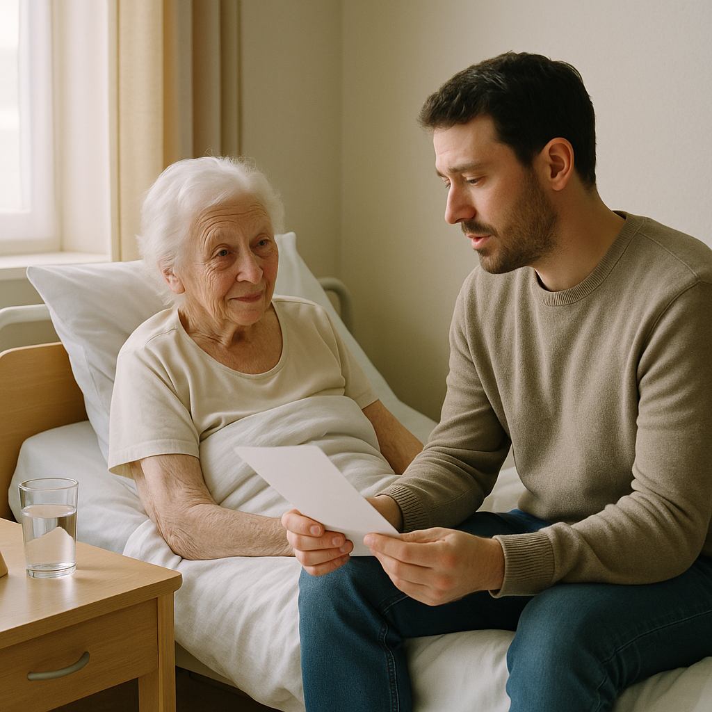 Potem zobaczyłem, jak jej palce unoszą się znad koca, jakby sięgały przez lata w stronę kogoś, kto nie przychodził od bardzo dawna. Zostawiłem mojego ojca siedzącego na szpitalnym łóżku lata temu, mówiąc, że wrócę po pracy. Zmarł, gdy byłem na spotkaniu w sprawie logo.