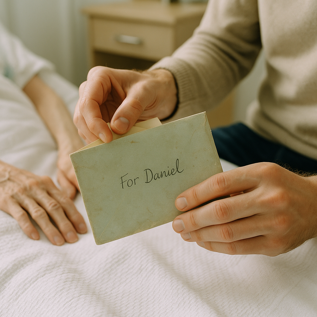 „Czekała na ciebie w niedzielę przed śmiercią” – brzmiał list. „Miała coś dla ciebie w swojej szafce nocnej. Zieloną kopertę z twoim imieniem. Trzymała ją, kiedy spała. Kiedy gorączka się nasiliła, wołała cię. Kiedy nie przychodziłeś, mówiła mi: »Może zapomniał. Jest młody. Młodzi zapominają o starych. Tak działa świat«. Ale ręce jej drżały, kiedy to mówiła”.