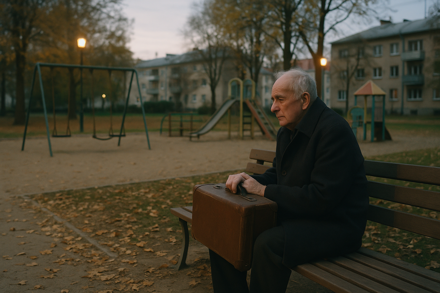 Dzieci biegały obok niego, rodzice rozmawiali przez telefony, nastolatki przewijały ekrany. Niektórzy kiwali głowami. Większość nie zwracała na niego uwagi. Siedział cicho, aż dzwon kościelny wybił szóstą, po czym powoli wstawał i odchodził, ściskając rączkę walizki jak coś kruchego.