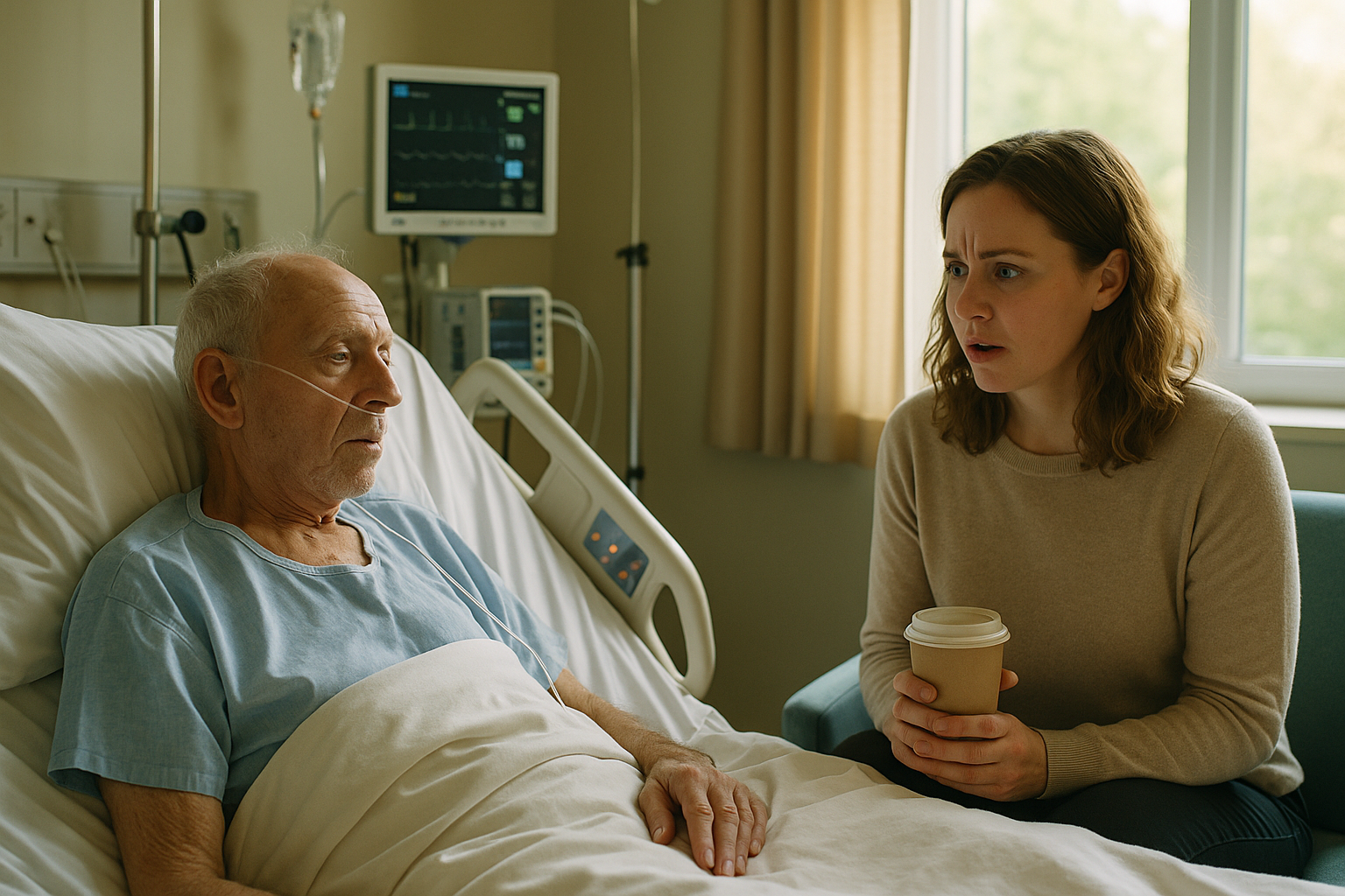 Stałam w drzwiach jego szpitalnej sali, ściskając papierowy kubek z letnią kawą. Monitory miarowo piszczały, okno pokazywało skrawek bladego zimowego nieba, a pośrodku tego wszystkiego leżał mój ojciec, Daniel, nagle skurczony w za dużych białych prześcieradłach. Zawsze był najgłośniejszą osobą w każdym pokoju. Teraz wyglądał, jakby miał zniknąć, gdybym mrugnęła.