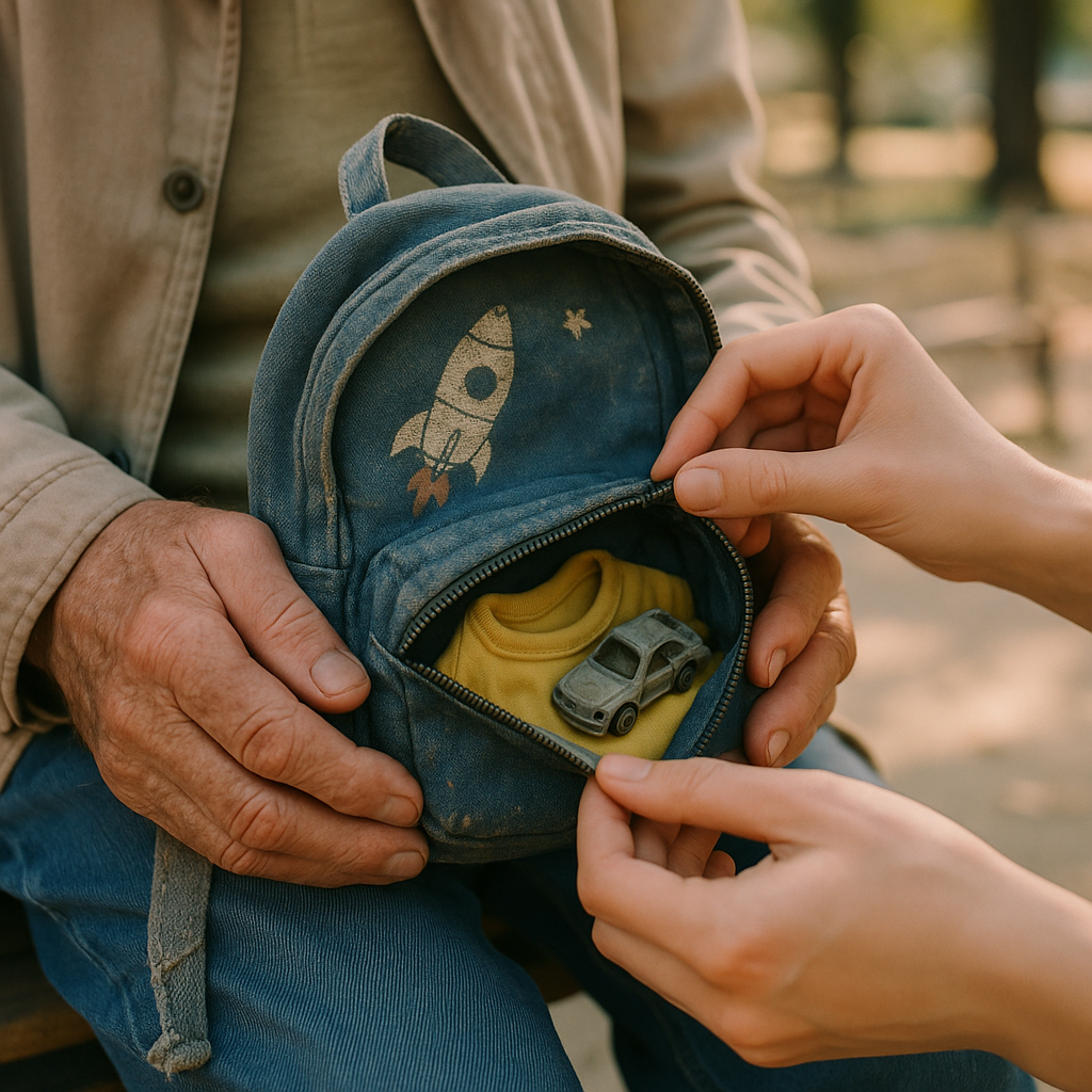 Staruszek codziennie siadał na tej samej ławce w parku, ściskając w dłoni maleńki niebieski plecaczek, aż pewnego popołudnia nieznajomy rozpoznał go i cicho powiedział: „Chyba należy do mojego brata”.