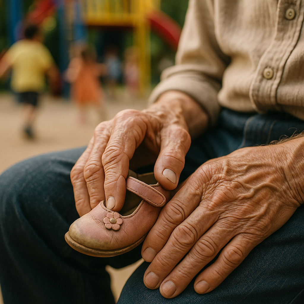 Staruszek co popołudnie przesiadywał na tej samej ławce w parku, wpatrując się w plac zabaw i ściskając malutki różowy bucik, aż pewnego dnia podeszła do niego mała dziewczynka i zapytała, dlaczego płacze z powodu kogoś, kto nigdy nie przyszedł.