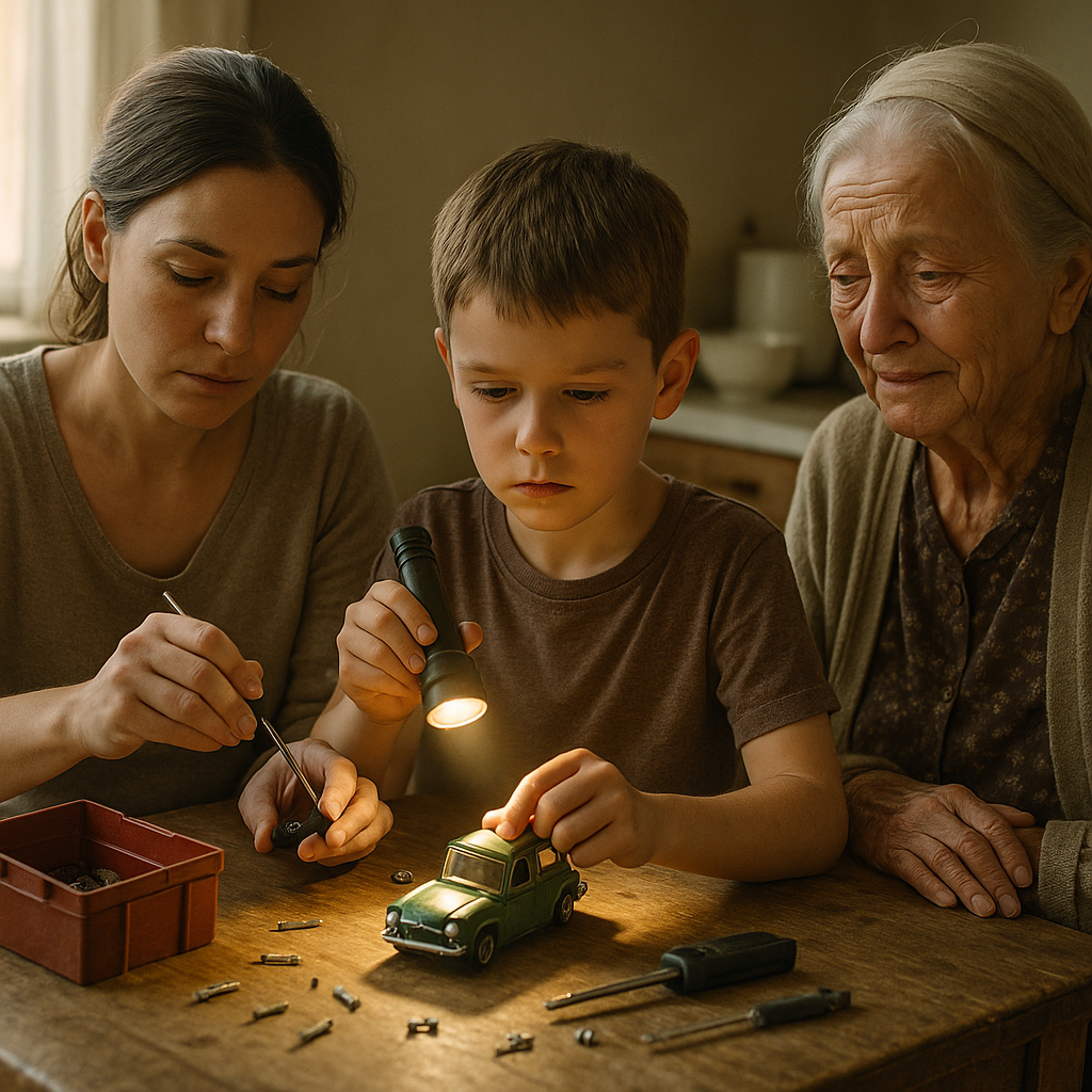 Liam skinął głową, jakby to przesądziło sprawę. Dzieci wierzą w słowa tak, jak dorośli wierzą w podpisy. Ustawił zepsuty samochodzik w rzędzie, zostawiając w chodniku pęknięcie przypominające tor.