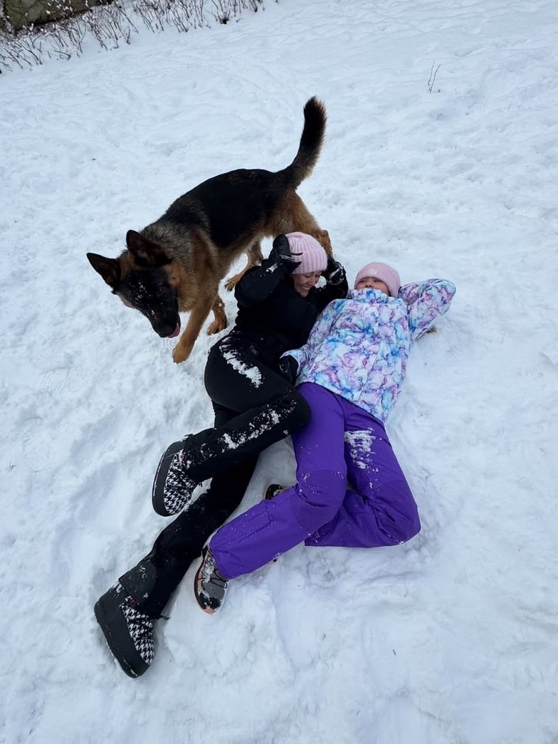 Na opublikowanych zdjęciach widać, jak aktorka i Helena beztrosko dokazywały w białym puchu. Jeden z kadrów szczególnie przyciągnął uwagę — mama i córka leżą razem na śniegu, otoczone zimową scenerią i psami krążącymi wokół nich. Całość wyglądała naturalnie, bez pozowania i bez presji idealnego ujęcia.