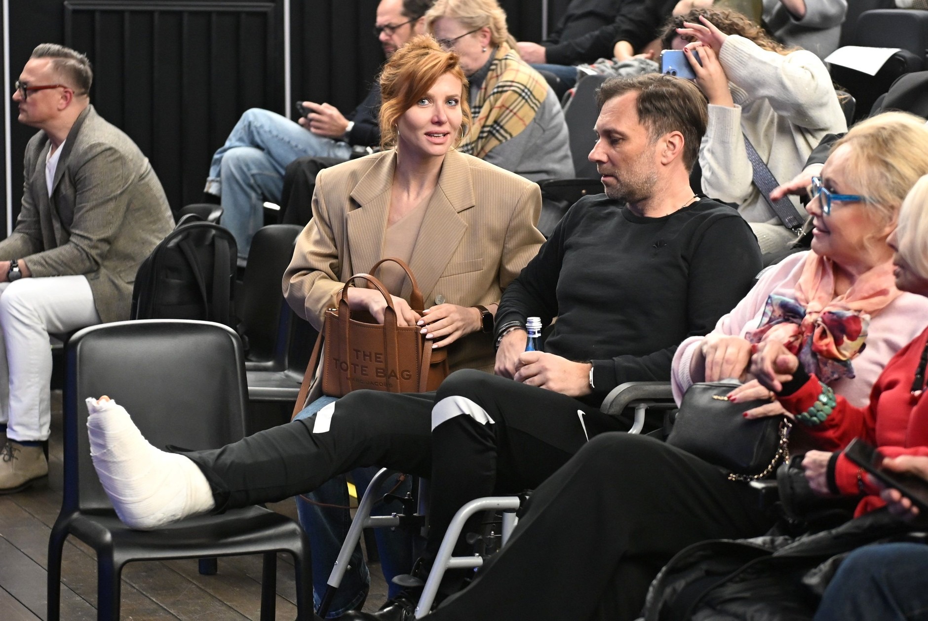 Podczas wydarzenia aktorka pozowała fotoreporterom solo, ale na widowni towarzyszył jej mąż, Jakub Kwiatkowski. I to właśnie on przyciągał spojrzenia wszystkich obecnych. Były rzecznik Polskiego Związku Piłki Nożnej, a obecnie szef TVP Sport, pojawił się bowiem z nogą w gipsie.