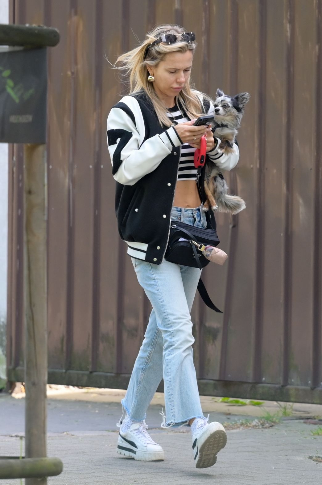 Tego dnia Doda postawiła na prostotę. Miała na sobie klasyczne dżinsy i krótki top odsłaniający wyrzeźbiony brzuch. Całość uzupełniła biało-czarną bomberką, sportowymi butami oraz niewielką torebką Prady. Stylizacja była luźna, miejska i daleka od scenicznego blichtru, do którego przyzwyczaiła fanów.
