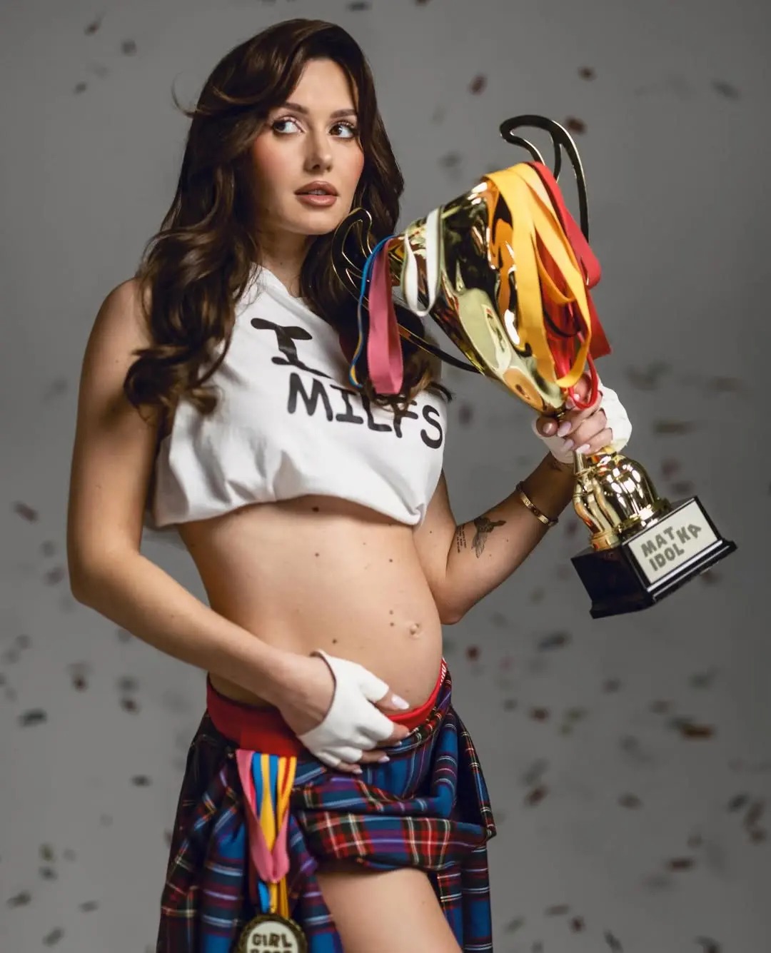 Kilka dni później influencerka poszła o krok dalej. Ruszyła z projektem „MATKA IDOLKA”, pokazując, że ciąża nie oznacza zawodowego hamulca. Wręcz przeciwnie — to dla niej moment intensywnej kreatywności. W teledysku do utworu „Girl Boss” Wersow dumnie prezentuje ciążowe kształty w odważnych stylizacjach, w tym w crop topie i asymetrycznej spódnicy, stojąc na podium w otoczeniu symbolicznych trofeów.