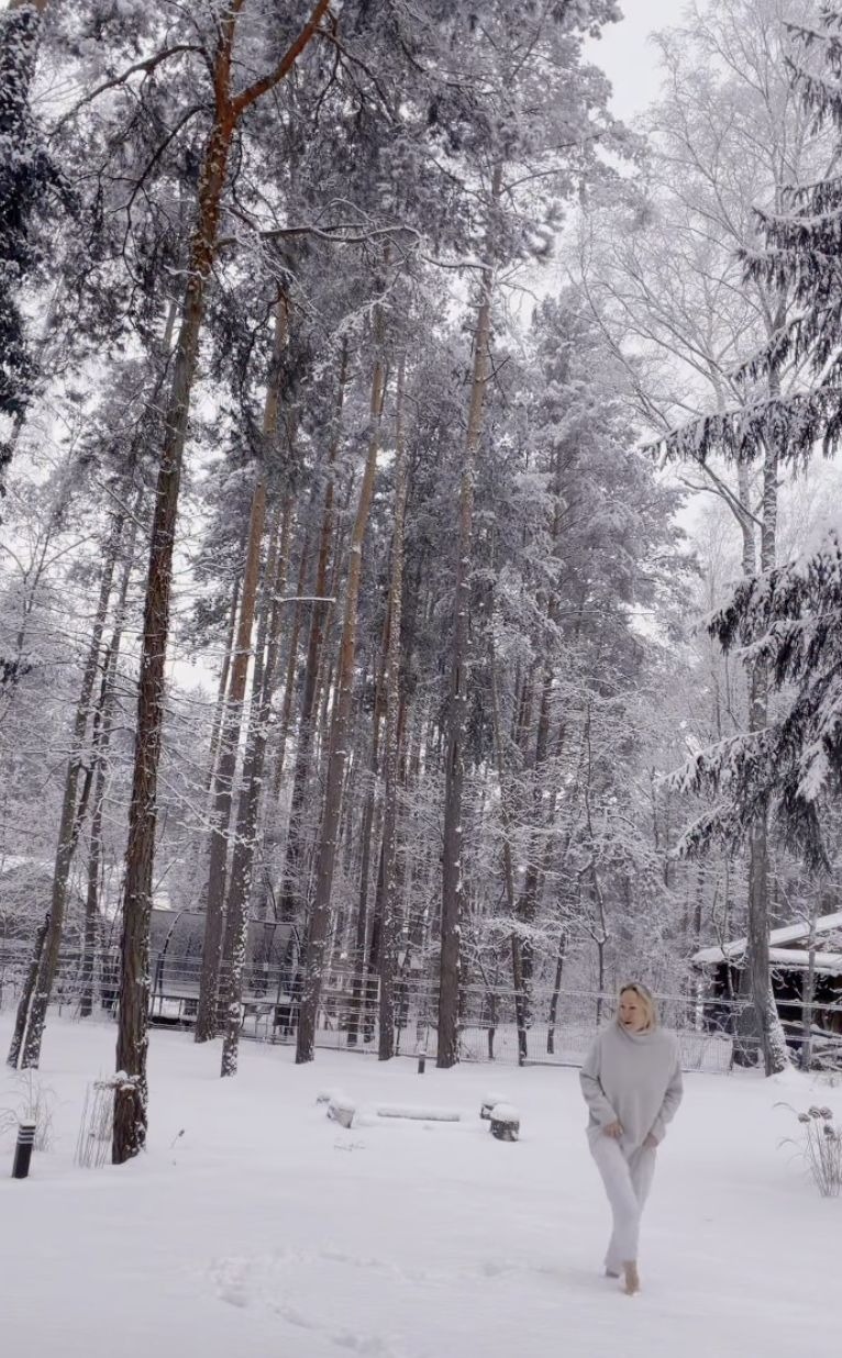 Ogromne wrażenie robi także otoczenie domu. Działka położona w środku lasu, z wysokimi iglakami i otwartą przestrzenią, wygląda szczególnie bajkowo zimą, gdy wszystko przykrywa śnieg. Na terenie posesji znalazło się też miejsce na dużą, drewnianą saunę — prywatną strefę relaksu, z której aktorka chętnie korzysta.