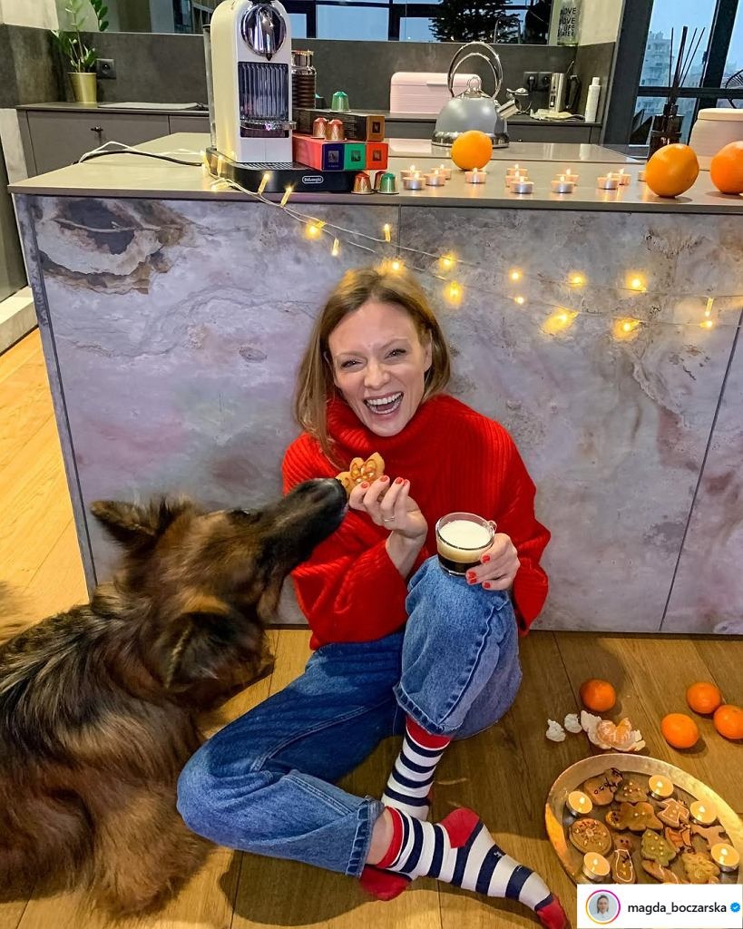 Boczarska od czasu do czasu pokazuje fragmenty wnętrza w mediach społecznościowych. Jedno z ujęć z antresoli, na której pozuje z psem, zdradza sporo. Centralnym punktem jest przeszklona ściana, dzięki której wnętrze jest jasne i otwarte. Naturalne światło gra tu pierwsze skrzypce i buduje atmosferę spokoju.