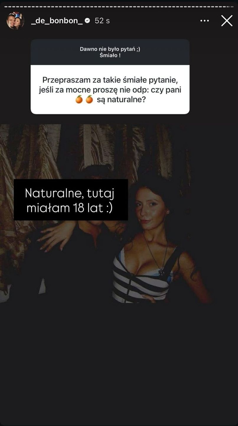 Internauta zapytał wprost o naturalność jej biustu. Dominika nie unikała odpowiedzi. Zareagowała krótko i jasno, pisząc tylko jedno słowo: „Naturalne”. Nie poprzestała jednak na samej deklaracji.
