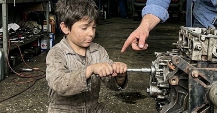 Śmiech Estebana Moralesa odbił się echem po surowym, betonowym warsztacie, rozlewając się między podnośnikami hydraulicznymi i mieszając z ciężkim zapachem benzyny oraz starego smaru. Nie był to śmiech szczery — był przesiąknięty pogardą, taką, która ma sprawić, że ktoś poczuje się mały. Wskazał palcem — ozdobionym zbyt ciasnym złotym pierścieniem — na rozłożony na części silnik leżący na głównym stole roboczym. Wokół niego inni mechanicy nerwowo się zaśmiali, nie dlatego, że było to zabawne, lecz dlatego, że wiedzieli, iż najszybszą drogą do utraty pracy jest sprzeciwienie się brygadziście.