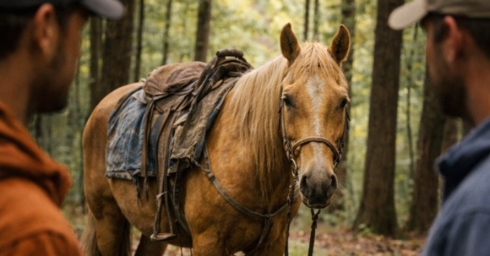 Nie wyglądał na dzikiego. Miał siodło i uprząż, ale wszystko wydawało się luźno przymocowane, jakby założone w pośpiechu. Przyjaciele mówili do niego spokojnie, próbując go uspokoić, wyciągali ręce powoli — lecz zwierzę nie chciało się uspokoić. W jego zachowaniu było coś… pilnego. Jakby próbował im coś przekazać, ale nie wiedział jak.