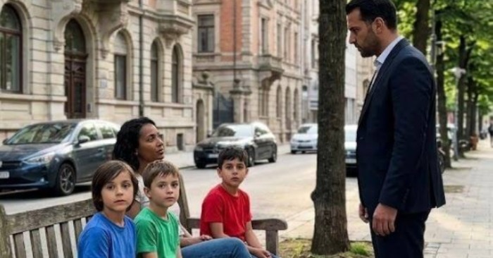 Claudia spojrzała. Ich spojrzenia się spotkały. Jej twarz zmieniła się z zaskoczenia w strach. Chwyciła dzieci za ręce, jakby chciała je ochronić.