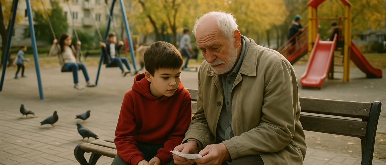 Staruszek, który codziennie siedział samotnie na ławce na placu zabaw, dopóki jakiś chłopiec nie włożył mu do ręki zmiętej karteczki i nie wywrócił całego życia do góry nogami.