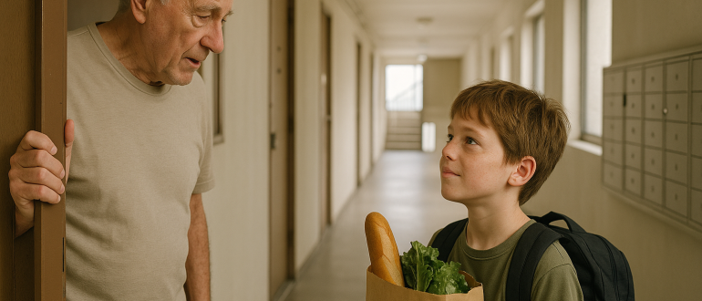 Starszy pan z sąsiedztwa pukał do naszej ściany każdego wieczoru o 19:00 i byliśmy gotowi zadzwonić na policję, aż pewnego dnia mój sześcioletni syn otworzył drzwi i zadał