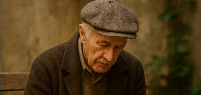 Każdego ranka na podwórku starego domu pojawiał się ten sam człowiek – siwy mężczyzna o dobrym obliczu i schludnym chodzie. Siadał na ławce przy piaskownicy, stawiał obok siebie