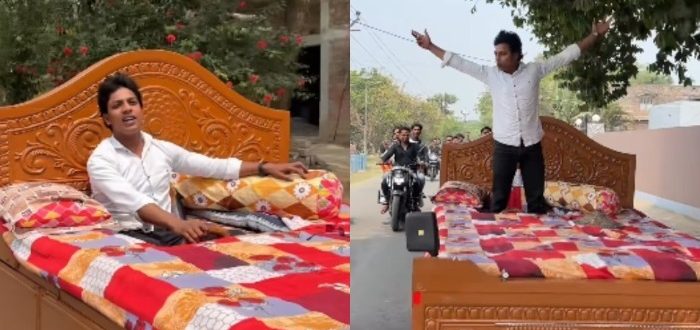 „Łóżko na kółkach?!” 🛏️🚗 Mężczyzna z Bengalu Zachodniego przekształcił zwykły materac w w pełni funkcjonalny pojazd — wyposażony w kierownicę i hamulce. Genialna innowacja czy czyste szaleństwo? Zobacz