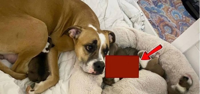 „Kiedy twoja suka rodzi… i pojawia się Shrek” 🐶💚 Kanadyjska rodzina nie mogła uwierzyć własnym oczom, gdy jedno ze szczeniąt wyglądało zupełnie inaczej niż pozostałe. Zobacz rzadkie zdjęcia