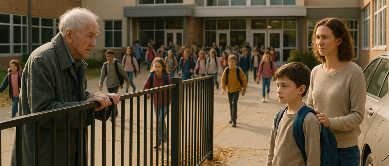 Staruszek stał przy szkolnym ogrodzeniu każdego popołudnia, aż pewnego dnia mój syn wrócił do domu i wyszeptał: „Mamo, on myśli, że jestem jego synem”. Po raz pierwszy zauważyłem
