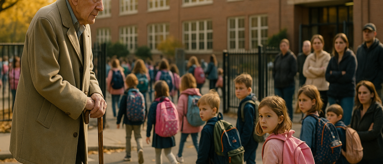 Staruszek stał każdego ranka przy bramie szkoły, aż pewnego dnia podbiegł do niego chłopiec i zadał pytanie, które zawstydziło całe miasto. Przez trzy miesiące, każdego dnia roboczego punktualnie