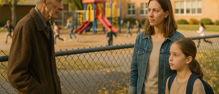 Staruszek co popołudnie podchodził pod szkolne ogrodzenie, obserwując bawiące się dzieci, aż pewnego dnia podeszła do niego moja córka i zadała pytanie, które zmieniło wszystko w naszej rodzinie.