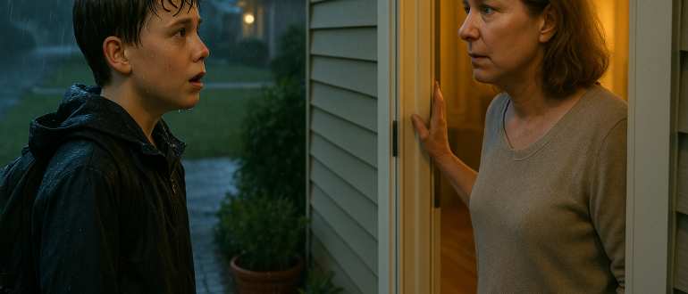 Chłopiec w moich drzwiach wciąż wołał do mnie „mamo”, ale mój jedyny syn zmarł trzy lata temu. Stał na deszczowym ganku, z przemoczonym plecakiem, włosami przyklejonymi do czoła,