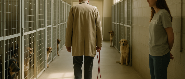 Kobieta, która przyszła adoptować szczeniaka i po cichu wybrała mojego ojca. Tak to teraz opowiada nasza sąsiadka Maria, śmiejąc się przez łzy, ale tamtego dnia w poczekalni schroniska
