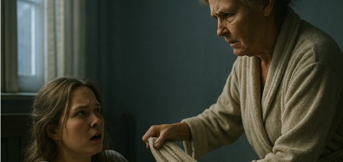 Emma drgnęła od zimna i ostrego światła. Była 6:02. Kołdra leżała już na podłodze, a nad nią, z rękami na biodrach, stała teściowa — Margaret. Jej głos był